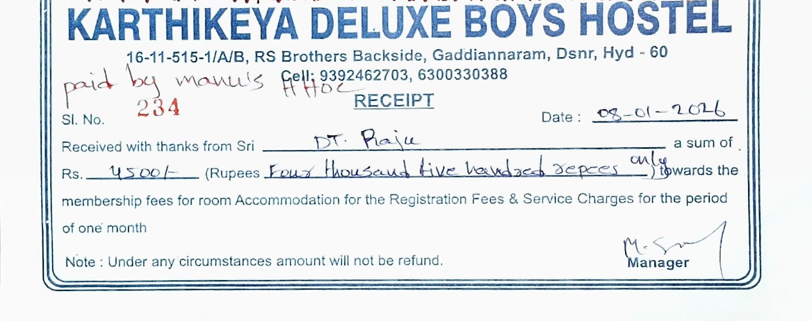 Fee payment- Manus HHOC tuition center students in Private School-2025