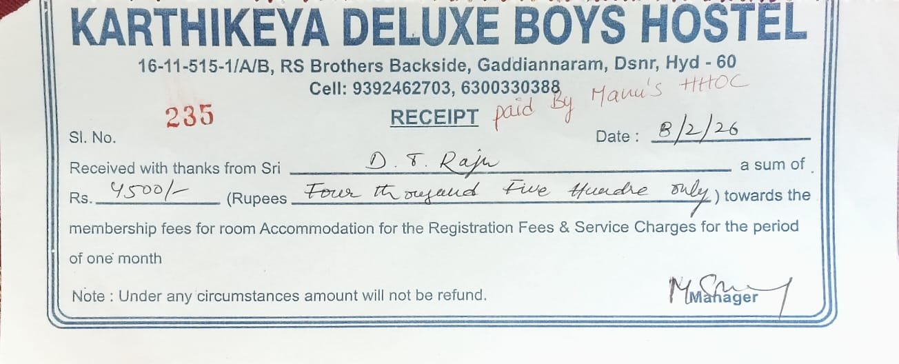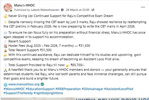 Fee payment- Manus HHOC tuition center students in Pvt School-Feb 2026