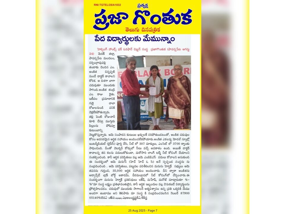 Extended Support to Orphan Student Kavya (Edu-Activity-84)