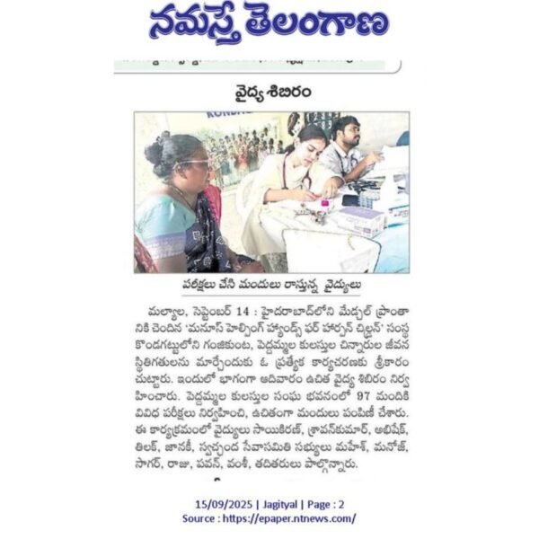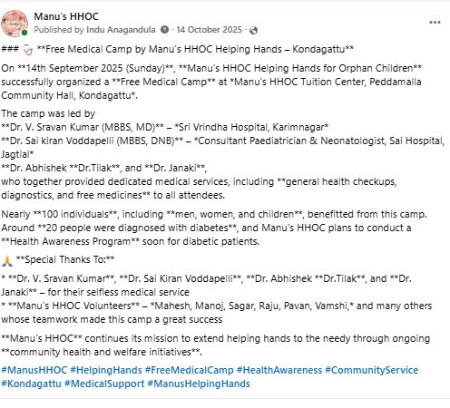 Free Medical Camp@ Kondagattu Tution Centre