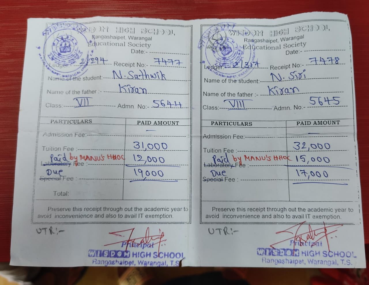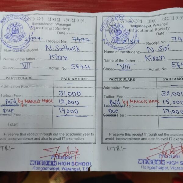 Fee payment- Manus HHOC tuition center students in Private School-2025