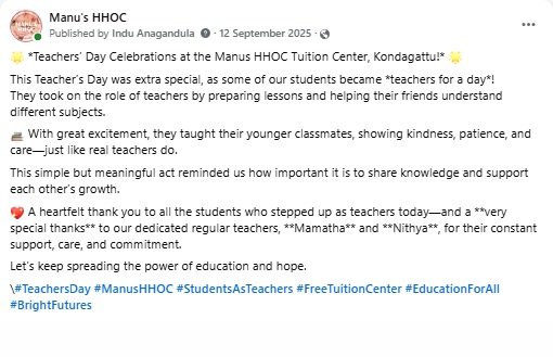 Teachers Day Celebrations @Kondagattu Tuition Centre